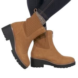 NWOB Blondo Demaria Waterproof Beige Suede Zip Front Boots Lug Sole Size 7.5