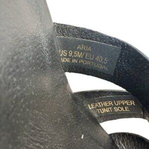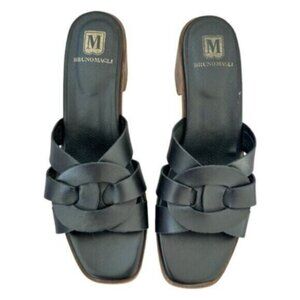 NWOB Aria sandal by Bruno Magli. Black with brown trim and heel. Interlocking straps add subtle dimension to a vacation-ready slide sandal elevated by a walkable block heel. Leather upper and lining. Made in Portugal. IT size 40.5 equals a US 9.5. Brand new without box.