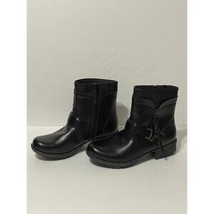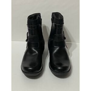 NWOB CLARKS Black Riddle Avant Moto Leather Bootie Boots Sz 7 Comfort Cushion