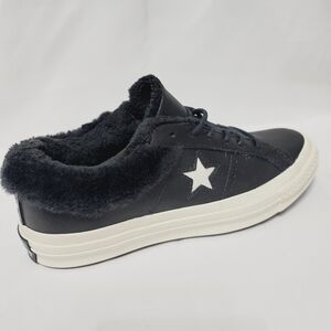NWOB CONVERSE ONE STAR LOW STREET LEATHER WARMER 'BLACK' - FAUX FUR LINING