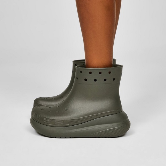 Stay dry without sacrificing comfort in these Crocs® Crush Rain Ankle Boots. Designed with lightweight Croslite™ foam and a chunky platform sole, these boots are perfect for rainy days, errands, and casual wear.