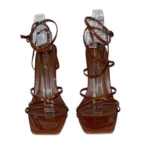 NWOB Cape Robbin Minnie Square Toe Strappy Stiletto Chocolate Brown High Heels 8