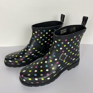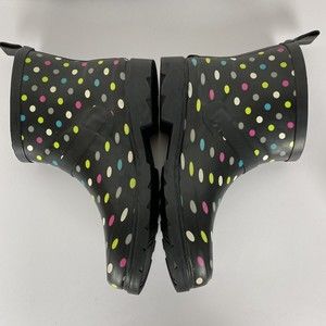 NWOB Capelli New York Womens Rain Ankle Booties Black Rainbow Polka Dot Size 10