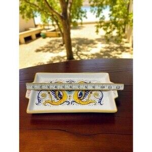 New without box Ceramic Nova Deruta Hand Painted Flower Dragons Tray White/Yellow/Blue Italy 10.75"x5