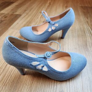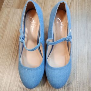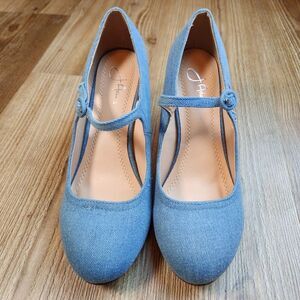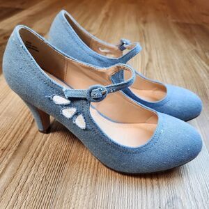 ☔️🩵NWOB Chase & Chloe Blue Denim Mary Jane Pixie Heels Size 8