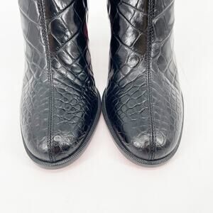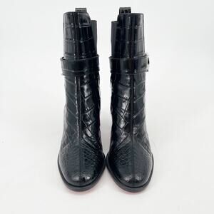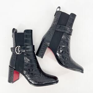 NWOB Christian Louboutin CL Chelsea Booty Black Croc Embossed Ankle Boots EU 37