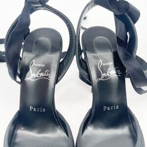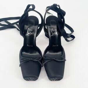 Christian Louboutin Cassia Black Crepe Satin Lace Up Square Toe Heels