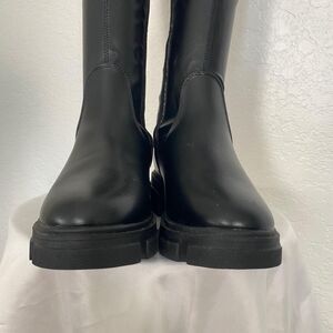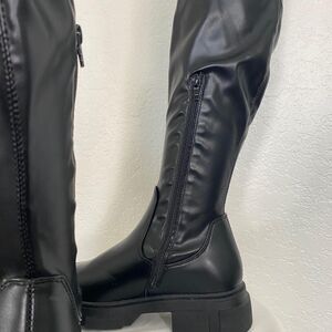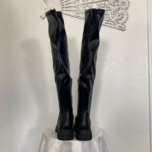 NWOB Chunky Slim Flat Platform Soles Over The Knee Boots Black Size US 6.5 EU 37