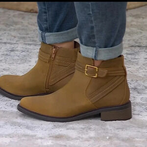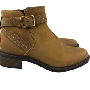 NWOB Clarks Collection Leather Strapped Ankle Boot Maye Step Dark Tan Size 8.5