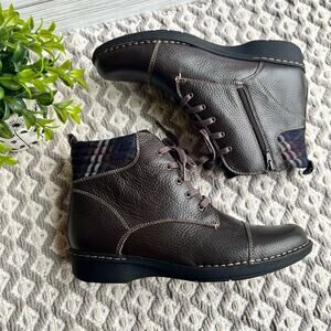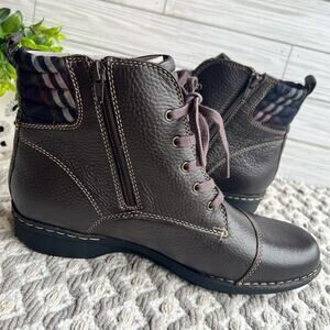 NWOB Clarks Women's Brown Tumb Whistle Bea Leather Upper Boots Size 10W