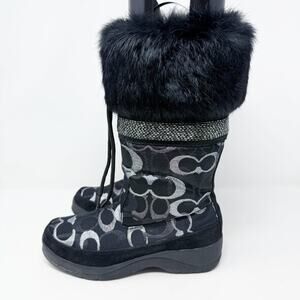 NWOB Coach Black Lizzie Logo Snow Boots Women's Size 5.5 Beaded w Real Fur Trim