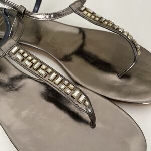 NWOB Cole Haan Gunmetal Effie Jewel Sandal Metallic Rhinestone Thong Toe 11