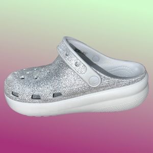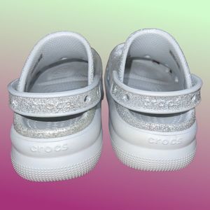 NWOB Crocs Atmosphere/Silver Glitter Classic Cutie Platform Clogs Size J2