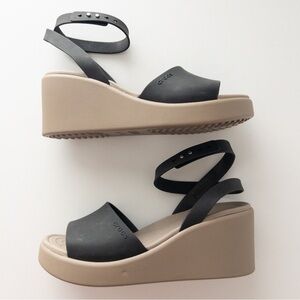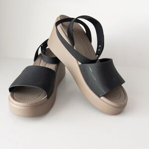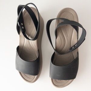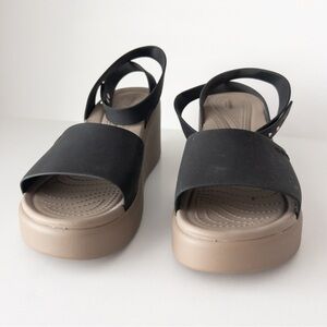 NWOB Crocs Brooklyn Ankle Strap Wedge Sandals Black/Tan Women’s Size 9