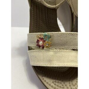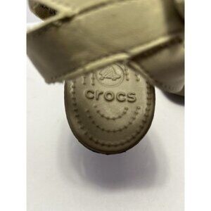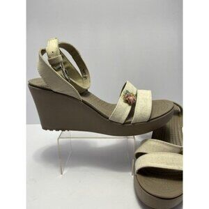 NWOB Crocs Leigh II Ankle Cross Strap Wedge Sandals Size 9 Beige Canvas