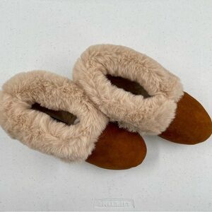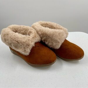 NWOB David Tate Caramel Leather Upper Suede Tan "Fur" Slip On Warm Bootie Shoes