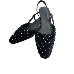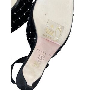 NWOB Doen Black Velvet Crystal Polka Dot Sling Back Kitten Heels Women’s US 7.5