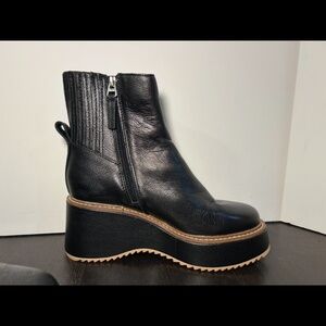 NWOB Dolce Vita Hilde Leather Wedge Boots Bootie Black Womans Size 6
