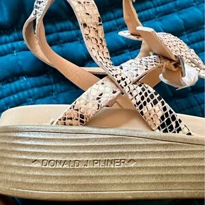 NWOB Donald J Pliner snake print black & tan ankle wrap platform sandals!