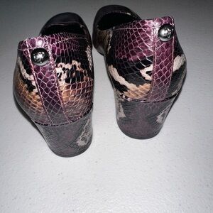 NWOB Donald Pliner Corin Leather Snakeskin Print Purple and Black Block Heel
