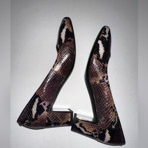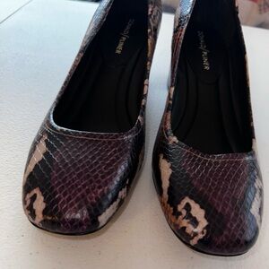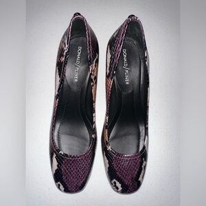 Donald Pliner Corin Leather Snakeskin Print Purple and Black Block Heel Office