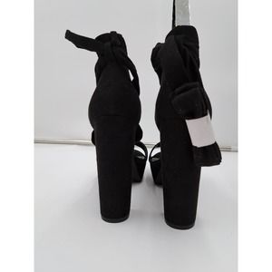 NWOB Dream Pairs Black Suede 5.5" High block heel ankle wrap dressy sandals 6