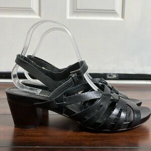 NWOB Ecco Black Leather Strappy Slingback Sandals Stacked Heel Size 39