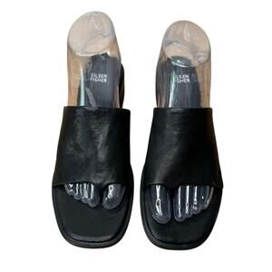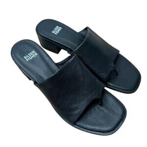 NWOB Eileen Fisher Airy Black Leather Heeled Slide Slip-On Thong Sandal, Size 8