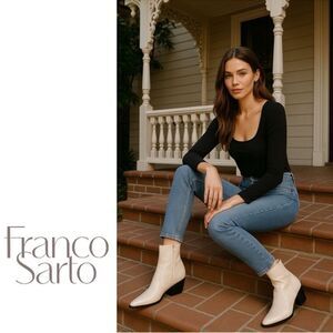 Franco Sarto boots, Vittorio bootie, white leather booties, women’s ankle boots, size 8.5M, block heel booties, zip ankle boots, modern booties, chic white booties, flawed boots, scuffed leather booties, NWOB Franco Sarto, discounted booties, fashion ankle boots, white pointed toe boots, versatile ankle boots, wardrobe staple booties, designer leather booties, everyday ankle boots, polished white boots, comfortable heel booties, Franco Sarto ankle boots, trendy white boots, women’s fashion booties, closet essential boots, minimalist white boots, stylish ankle booties, affordable designer boots, surface scuff booties, women’s 8.5 boots