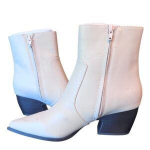 NWOB- FLAWED- Franco Sarto Vittorio Bootie White Leather Zip, 8.5M