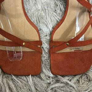 NWOB FRAME Le Braxton Suede Square Toe Strappy Sandals in Orange Sz 37.5 US 7