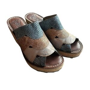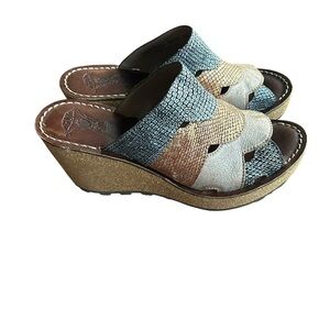 NWOB Fly London Multicolor Wedge Sandals Size 41