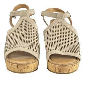 NWOB Franco Sarto CANYON Taupe Wedge Sandal Laser Cut SIZE 7 Womens Shoes Open