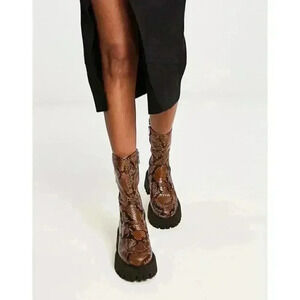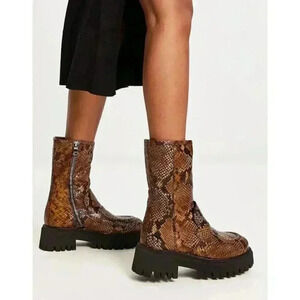 - NWOB Free People Madison Leather Platform Loafer Boots in Golden Snake S…