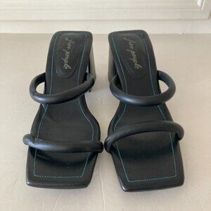 NWOB Free People Parker Double Strap Black Leather Heels Sz 38.5