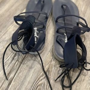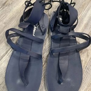 NWOB Free People Women's Navy Blue Genuine Leather Summer Gladiator Sand…