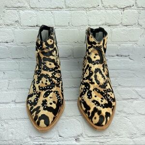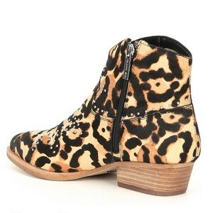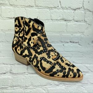 New without box Gianni Bini Brycin Calf Hair Sheared Fur Studded Western Ankle booties in Leopard Print.
