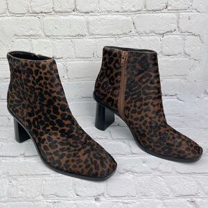 New without box Gibson & Latimer Vina Leopard Print Haircalf Booties. Genuine dyed haircalf (USA) upper