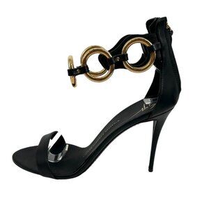 Elevate your style with NWOB Giuseppe Zanotti Chain Ring Ankle Strap Black Heeled Sandals. Crafted from high-quality materials, these shoes guarantee a chic and elegant look.