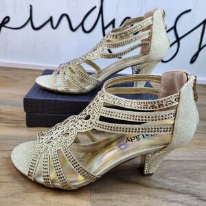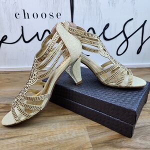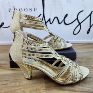 🩵NWOB Gold Rhinestone Zippered Heels Size 8