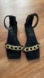 NWOB Good American Womenβs Gold Chain Ankle Strap Suede Black Sandals Size 6