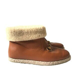 NWOB Gucci Fria Horsebit Ankle Boots Womens 41 10 Brown Leather Sherpa Lined NEW