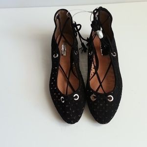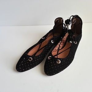 New without box Halogen laser cut black leather Ghille ballet lace up flat.