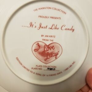 NWOB I Love Lucy "It's Just Like Candy" Collector's Plate The Hamilton Collection 1989
