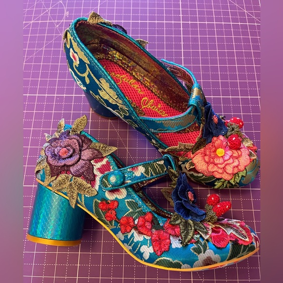 NWOB Irregular Choice size 38, size 7 floral embroidered heels.