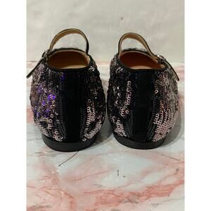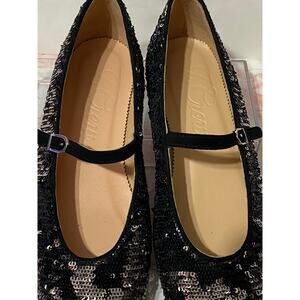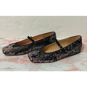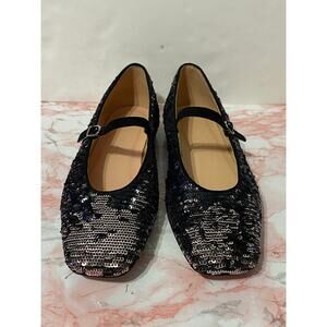 NWOB J.CREW Anya Mary Jane Flats Black Silver Sequin Size 7 Square Toe Sparkle