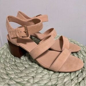 NWOB J.Crew Three-Strap Stacked Heel Sandal In Pale Mocha Suede