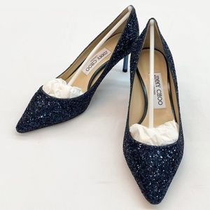 NWOB JIMMY CHOO ROMY 60 Pumps, Navy Coarse Glitter 100% Authentic Brand New