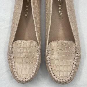 NWOB. Jack Rogers 9B Millie Moccasins In Blush Croc Leather.