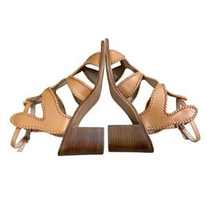 NWOB Jack Rogers Tan Leather High Heel Sandals Women's US Size 9 Made in Brazil